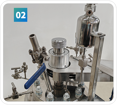 | Kettle lid open port | Needle Valve on Gas Port and Liquid Port, Bottom Insert Tube for sampling or inlet use, Pipe Plug on Solid Charging Port, Platinum Resistance (PT100)on measuring and controlling Temperature Port, Pressure Gauge and Safety Device (Blasting Disc) on Security Blasting Port, and Cooling Coil Faucet for cooling water inlet/outlet. |